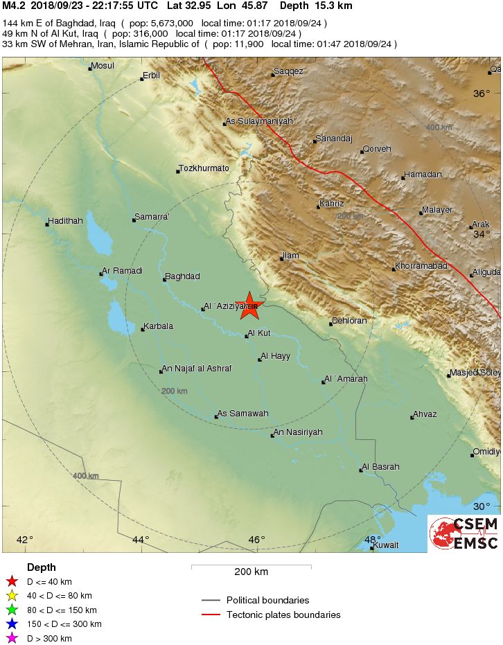 And an unusual earthquake struck Iraq somewhat near the ruins of Babylon south of Baghdad, at 4:18 p.m. CST Sunday September 23, 2018.
