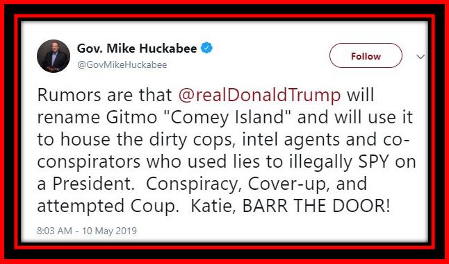 Huckabee asks will Trump rename Gitmo “Comey Island” Twitter Post