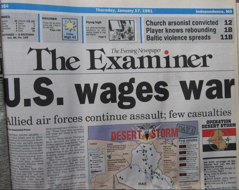 23×455 days ago this evening at about 6:44 p.m. CDT, bombs began dropping on Iraq as "Operation Desert Storm" began Wednesday evening January 16, 1991.