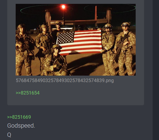 QPOST #3890 Q WISHES THE MILITARY "GODSPEED"! Posted By: jensingr