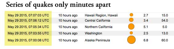 The Alaska earthquake was just a few hours after a large unexpected volcanic blast from a volcano in South Japan. The Japan blast, the Alaska earthquake, and this California earthquake all occurred within less than 12 hours time...