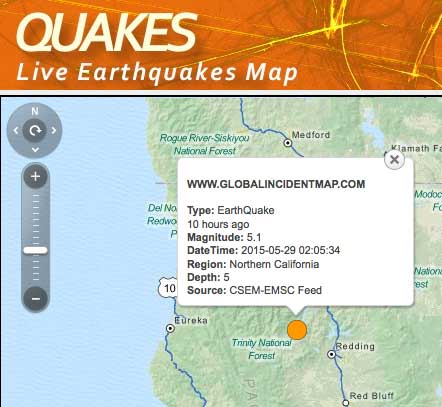 For reasons unknown, the 5.1 tremor in Northern California does not yet appear on the USGS or CSEM / EMSC websites, while the quake shows up on the Global Incident Map website, as seen below