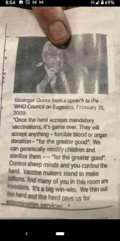 “We are in the midst of the biggest depopulation program the world has ever seen, where most of humanity are acting as useful idiots to it and to their own demise.”