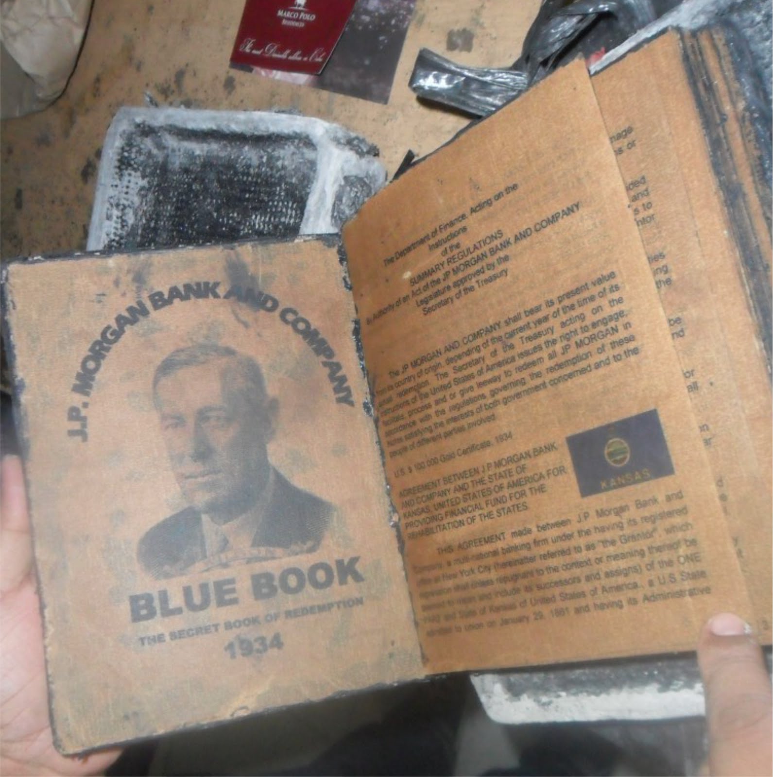 Deep inside the Pandora's Suitcase disclosures are thought to be the various texts of the JPMorgan Bank Blue Book (The Secret Book of Redemption 1934, and its subsequent editions). Some images of the 1934 edition of this book are pictured above.