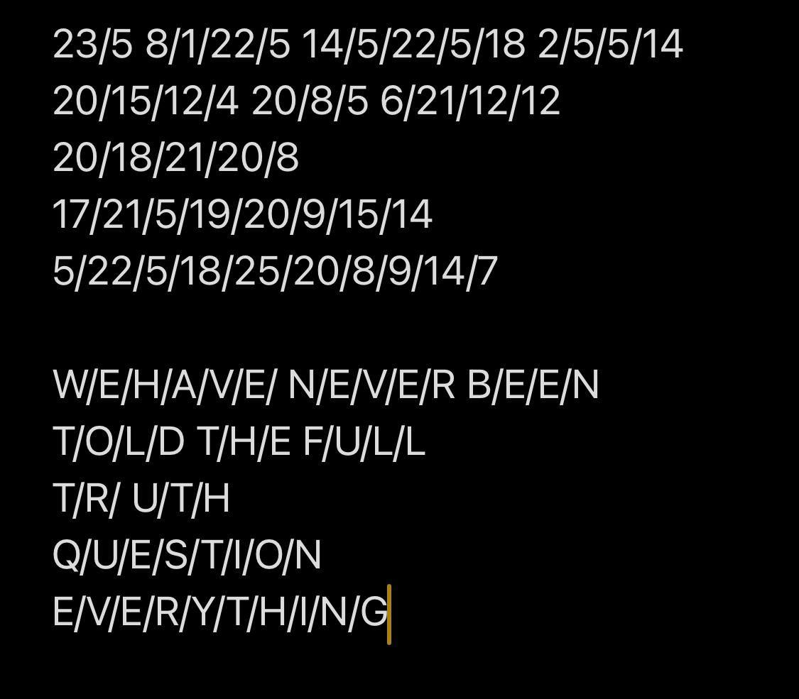 THE NUMBERS EQUATE TO THE SENTENCE BELOW IT