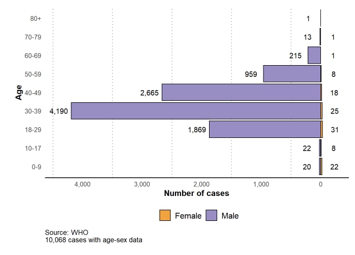 Of ~10,000 monkey pox victims of age 18+, 84 were women. Of 72 victims under 18, 30 were girls