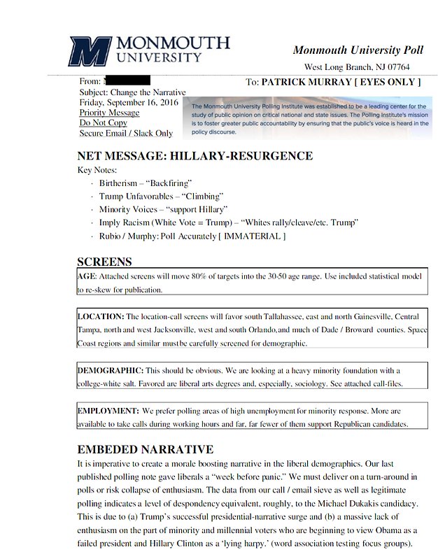 Monmouth U...Leaked Document On How To Rig Polls and Greenscreen Hitlery