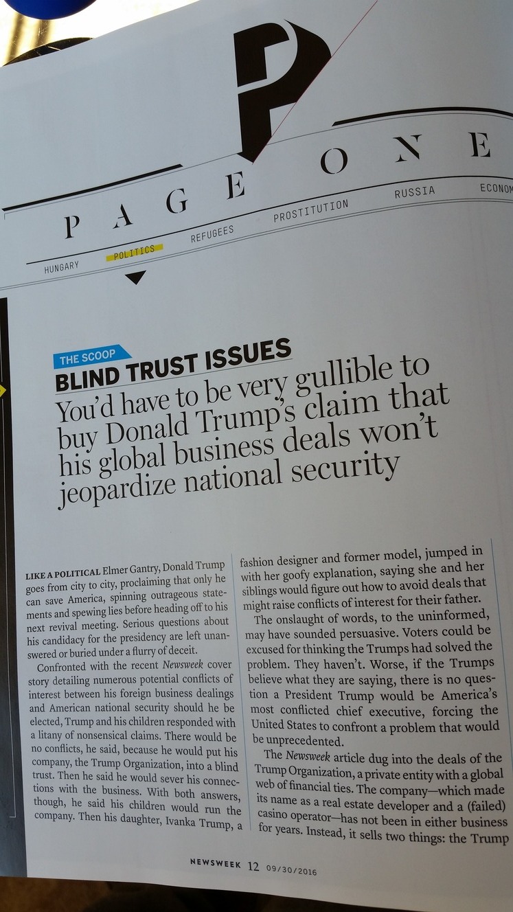 Reader: August Newsweek - "YOU'D HAVE TO BE VERY GULLIBLE TO BUY DONALD TRUMP'S CLAIM THAT ..." Posted By: hobie