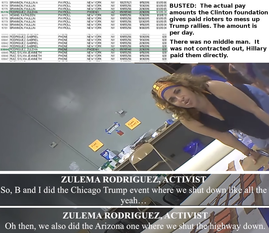 Zuelma Rodriguez has been found on Hillary's payroll. Paid rioters make pretty good money. I do not have time to dig deeper right now but will post this, and a link to the Reddit it appeared on for now. Obviously this should kill Hillary in a single shot, because she paid the rioters and was therefore responsible for everything they did. REVELATION: Now we know where some of that money that was supposed to go to Haiti earthquake relief went!