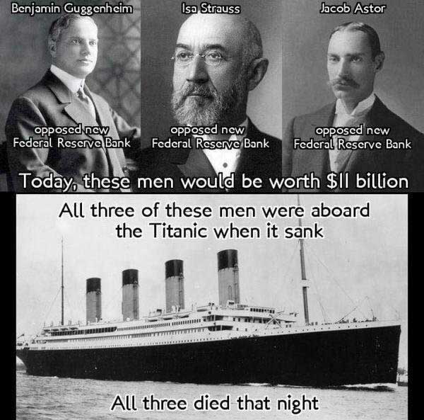 Some of the wealthiest key figures in the financial industry died when the Titanic sunk, all of them had one thing in common; they opposed the Federal Reserve.