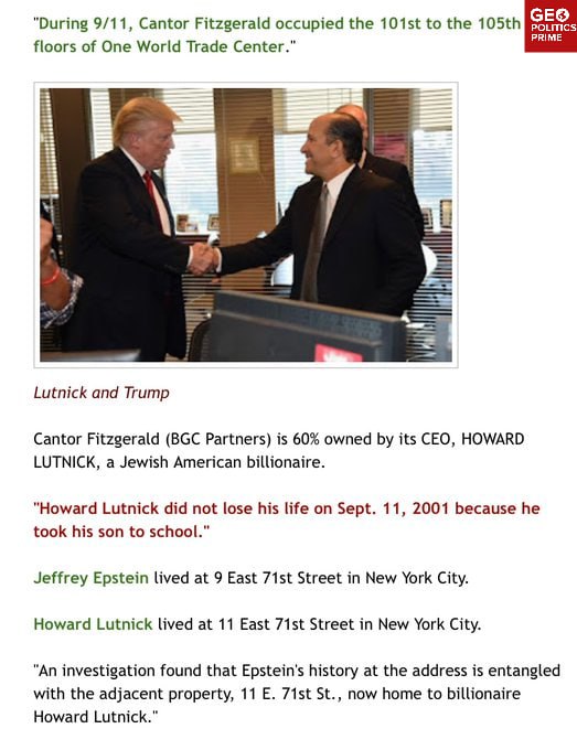 If you want to know what kind of scumbag Lutnick really is, take a look at this seven-minute documentary showing, among other things, how he screwed the families of his 658 employees who died on 911 while he conveniently skipped work.
