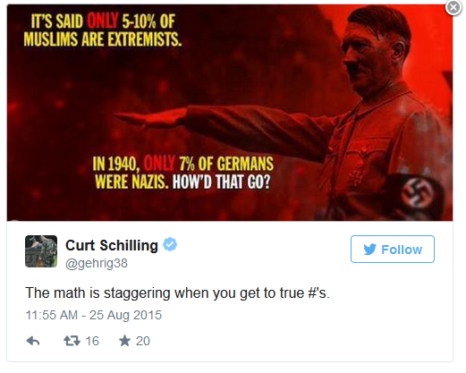 Pic Via Deleted Curt Schilling Tweet Posted By: Watchman In Response To: Poland Rejects Muslim Immigrants: ‘General Consensus’ That Muslims Don’t Assimilate (RumorMail)