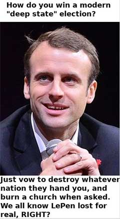 Perhaps Macron is backing off because the very FIRST thing to hit the alt media news cycle in a big way was that the Mossad burned the cathedral. If that's where alt media took it right from the get-go, obviously the best thing to do is apologize and REBUILD IT. MACRON HAS BEEN PEGGED AS THE GUY THAT HAD IT BURNED QUITE NICELY, SEE THE FOLLOWING: