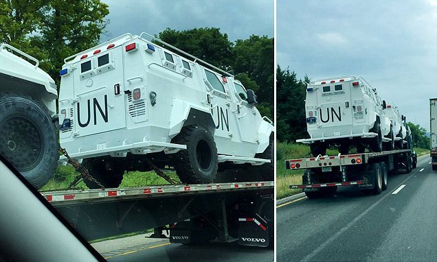 pics of UN trucks being trucked in Posted By: jensingr In Response To: The UN plan to break apart and occupy America following the Red Dawn Invasion (GeorgeEaton)