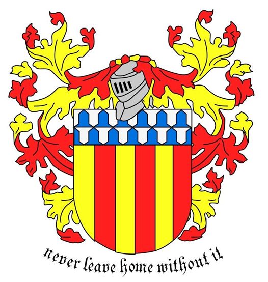 This is the Belcher aka Belle Cher Coat of Arms, with its French motto obscured with my son's irreverent "don't leave home without it" quip. The actual motto is: "Loyale au Mort" --- Loyal Unto Death.