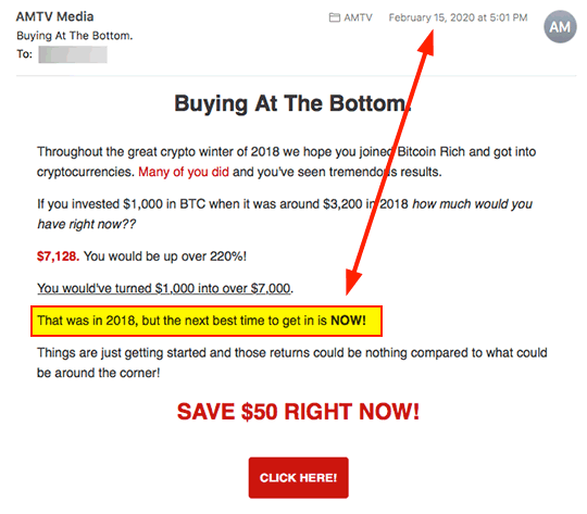 Received this email solicitation from AMTV on Feb 15, 2020: