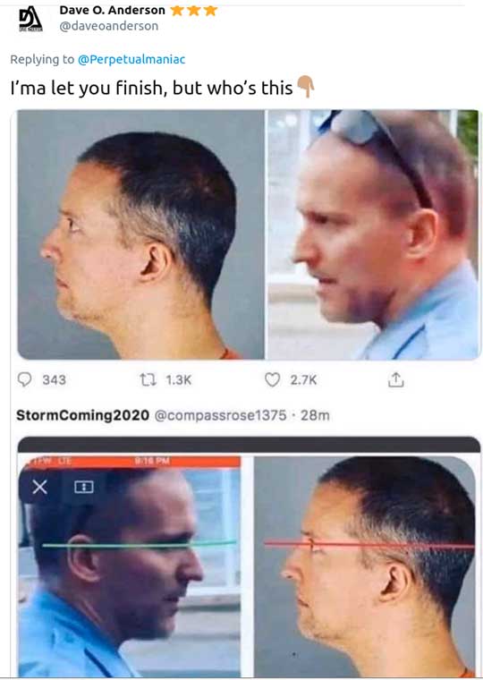 Is that actor Ben Bailey wearing a blue police shirt or do both photos depict the murder suspect, Derek Chauvin? Posted By: NaturalWisdom In Response To: Ben Bailey is 6'6" tall. If he & George Floyd were Minneapolis crisis actors, any photo should show him to be towering over everyone else (NaturalWisdom)