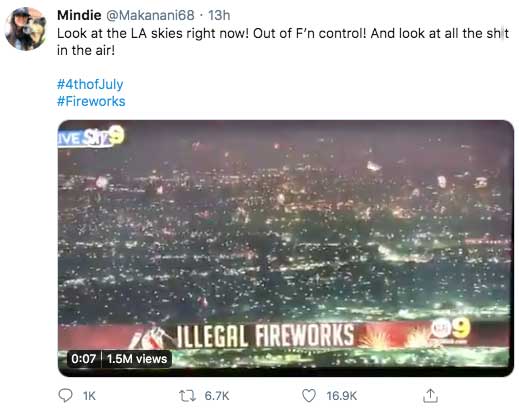 - JIM STONE: VAST AMOUNTS of properly used ILLEGAL FIREWORKS over SoCal skies on the 4th. THIS LOOKS WONDERFUL!