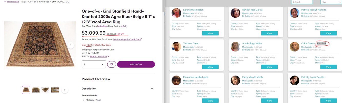 - HERE IS MORE WAYFAIR .... missing children name ads