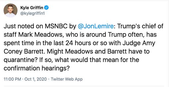 Tweet: SCOTUS confirmation hearing of Amy Barrett likely to be delayed due to Trump's CV19 diagnosis Posted By: NaturalWisdom In Response To: Utah Senator Mike Lee Tests Positive For COVID 19 (Chinese Virus) (CrystalRiver)
