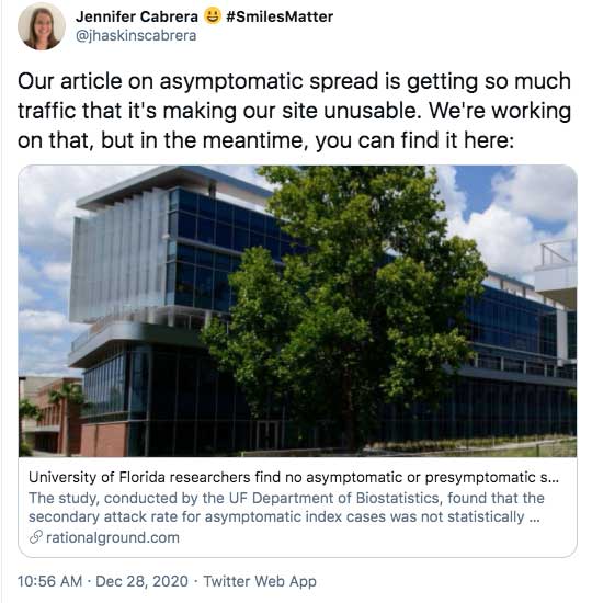 University of Florida researchers find no asymptomatic or presymptomatic spread Posted By: NaturalWisdom In Response To: SEP 2020 - Fauci admits: outbreaks not driven by asymptomatic transmission (NaturalWisdom)