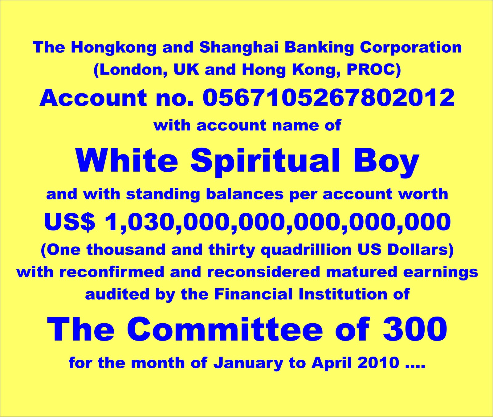 Global banking crisis? What global banking crisis? Thousands of quadrillions of hidden monies revealed to be held in multiple off-ledger black screen accounts Posted By: Lymerick In Response To: The JP Morgan Blue Book. The Secret Book of Redemption - the covert world authority text which establishes the human bloodlines to which the entire wealth of the planet belong (Lymerick)