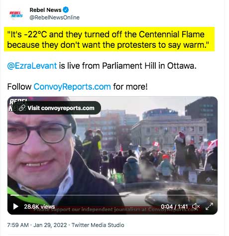 REBEL NEWS: "It's -22°C and they turned off the Centennial Flame because they don't want the protesters to say warm" Posted By: NaturalWisdom In Response To: State of the Nation: THE GLOBAL FREEDOM MOVEMENT FINALLY EXPLODES IN CANADA!!! (NaturalWisdom)