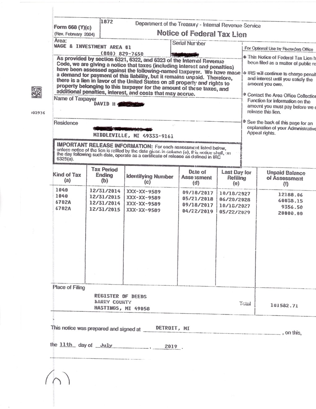 July of 2019 I received the so called Tax Lien in the mail. I have enclosed a copy so we can give this document a community