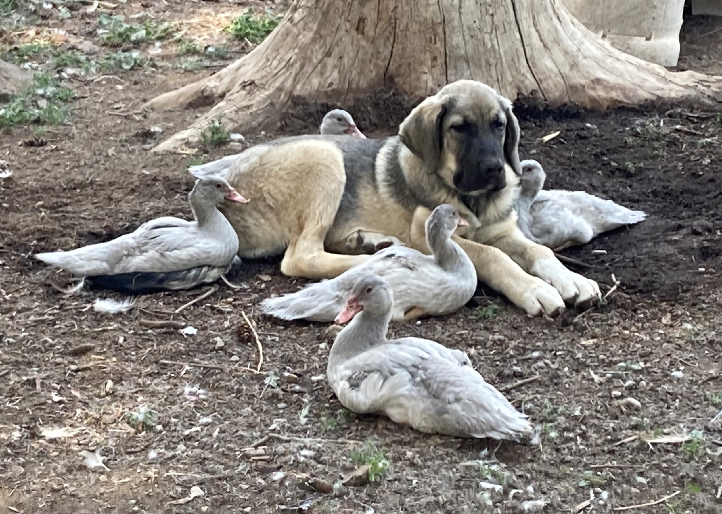 This is Comet, with his beloved ducks...