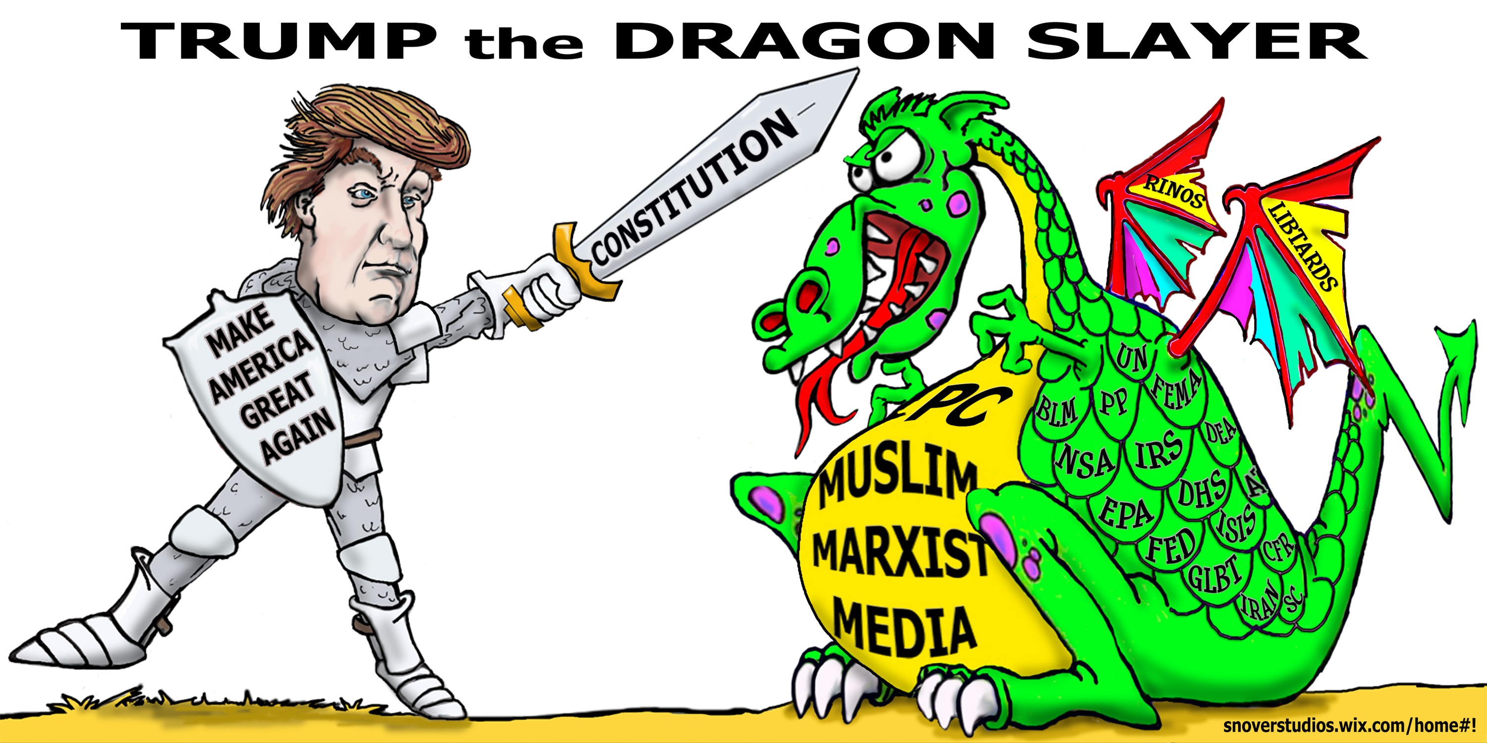 Original artwork for "Trump the Dragon Slayer" - A back-firing attempt at satire by liberals? Posted By: MrFusion In Response To: See The Incredibly Strange Donald Trump Billboard That’s Causing ‘Quite A Stir’ (NaturalWisdom)