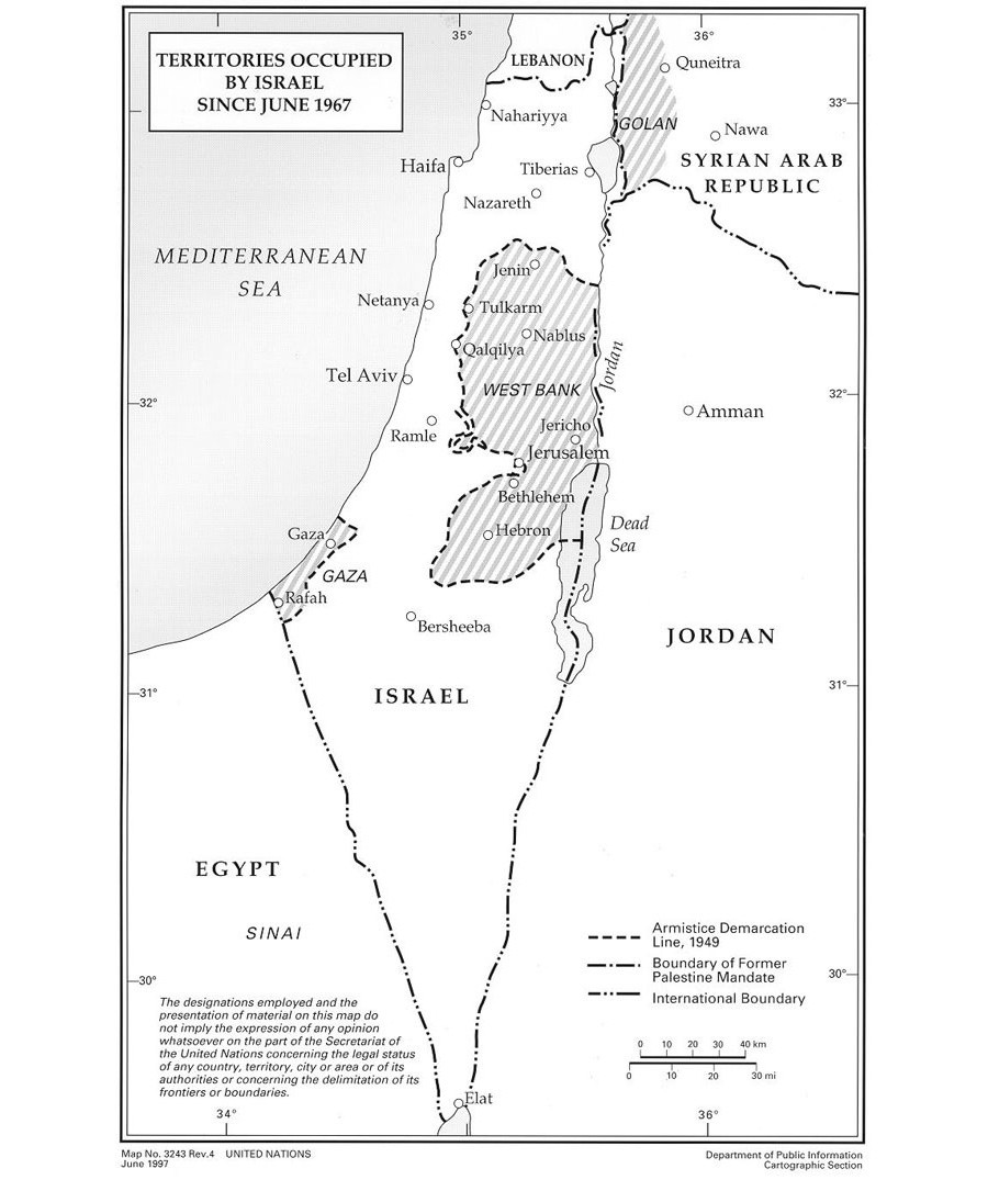 The Israeli presence in the Golan Heights is in dispute. The region is internationally recognized Syrian territory that has been occupied by Israel since the 1967 Six-Day War between Israel and several Arab states. UN Resolution 242 (1967) demands the withdrawal of Israeli armed forces from the territories occupied in the conflict. Israel disagrees with the wording of the resolution, saying the territories are disputable.