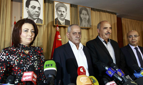 President of the Tunisian employers union Wided Bouchamaoui, Secretary General of the Tunisian General Labour Union, Houcine Abassi, President of the Tunisian Human Rights League Abdessattar ben Moussa and the president of the National Bar Association, Mohamed Fadhel Mahmoud (Reuters)