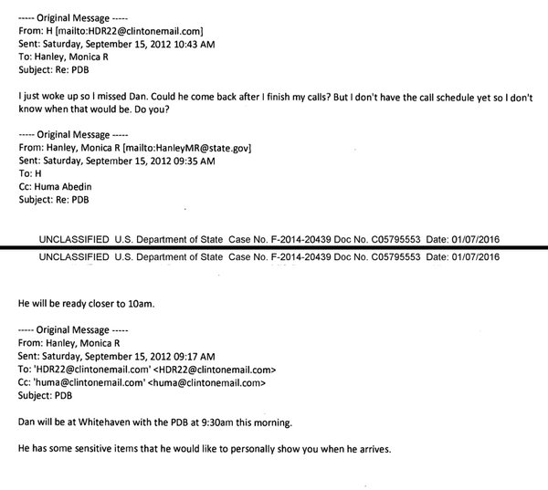 4 days after the Benghazi attack of Sep 11, 2011, Hillary overslept and missed a morning meeting, based on this email Posted By: NaturalWisdom In Response To: Breaking: A One Sentence E-Mail Sent By Hillary Could Be The Torpedo Which Finally Finishes Her Lying A$$ (Watchman)