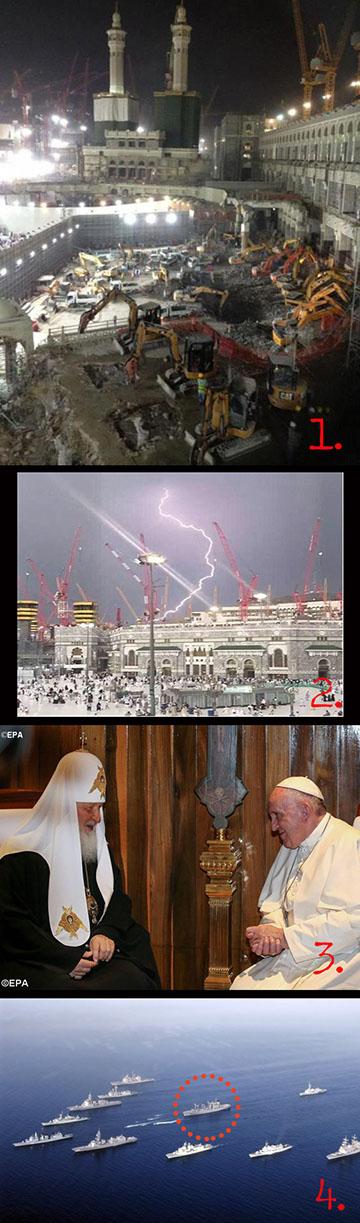 The alleged object caused another “plasma emission” that apparently killed 4000 people and put tens-of-thousands into a panic…which the Saudis blamed on a random “panic stampede.” The next day, the Saudis apparently contacted the head of the Russian Orthodox Church [??], Patriarch Kirill of Moscow, and asked for help. [The Ark must've had his number on it.] THEN, a few months later, these two guys met in Cuba (pic 3).