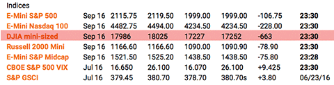 Dow futures (Sep 2016) have fallen 663 points in overnight trading to 17,252 Posted By: NaturalWisdom In Response To: Japanese shares getting crushed. Nikkei 225 index down over 1100 points (-6.81%) (NaturalWisdom)