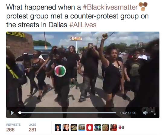 What happened when a #Blacklivesmatter protest group met a counter-protest group on the streets in Dallas #AllLives Posted By: NaturalWisdom In Response To: Here's The You Tube Version If You Can't Veiw It At The Other Link: (Watchman)