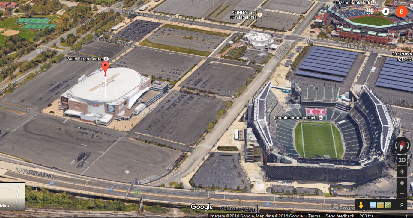 Wells Fargo Center, image, a wall around this? Posted By: billym In Response To: Dems Building A 4 mile Long, 8 foot High Barbed Wire topped, Gun Guarded Fence Around Their Convention...To Keep BLM Out Or In? (Watchman)