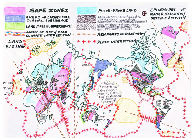 A. As I look at one of his maps (I included it here in the post) and tune into it, I get an overwhelming feeling of accuracy as he has outlined it. The one thing that really comes to me though is the time frame in which he is referring to. I don't see this as one major event, and the earth is forever changed, but rather several events spanning over hundreds of years that create a new way we view earth. Things look to take phases much like dominoes.