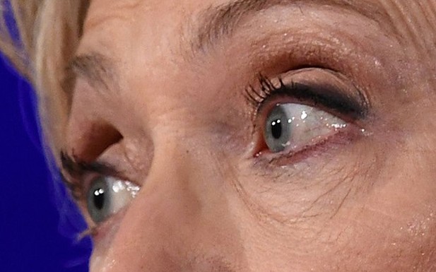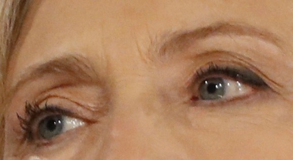 Below see a screen capture of what is up at http://Rense.com, and three images of Hillary's eyes at the debate. If it's there, it's really hard to tell. Maybe I'm imagining it, but to me her right pupil seems slightly larger than her left. Unfortunately, in the side view image, her right eye is not in good focus.