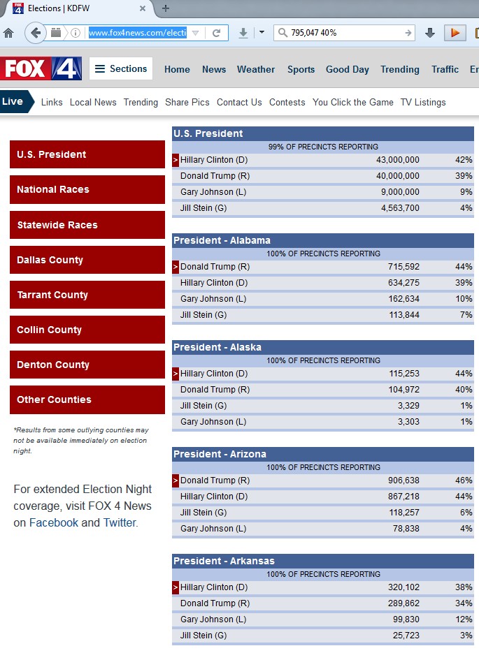 Take a look at this from a TV news station - almost all the same numbers Posted By: MrFusion In Response To: Jim Stone Busts Worldnow Media Server....Election Results Are ALREADY POSTED FOR MEDIA VIA STATE Showing Trump Loss.... Amazing.. (Watchman)