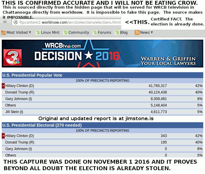 UPDATE: I did not expect it to last - WRCBtv above deleted the page the capture was taken from but the more detailed election results from WMCTV in Memphis (below) still work! So I will get to hacking and find another station that matches what WRCBtv (above) posted. They all have it, it's just a matter of finding a file they don't have publicly listed. Here is the direct link to WRCBtv that proves they don't have it posted yet and the above capture was from a back door job.
