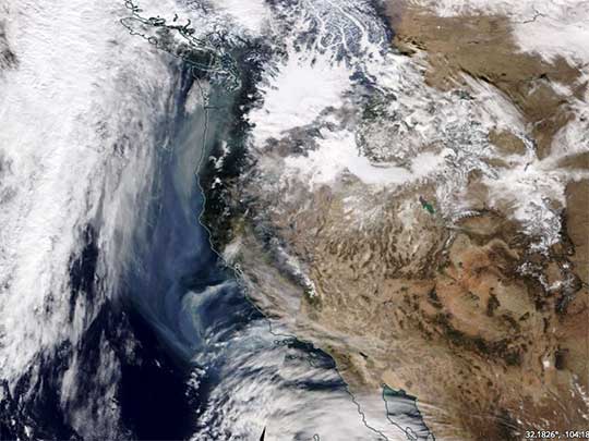 The smoke from the SoCAL fires is being directed northeast to inundate the Pacific Northwest. This is being reported in the news as: "…the most amazing thing has happened. Smoke from unusually late wildfires over southern California have reached our region, producing reduced visibility and degraded air quality. Really stunning." My Olympic Peninsula is covered in stagnant smoke, the mountains shrouded in a brown-grey haze. I wonder what they plan to use these smoke particulates for. Here is a NASA Worldview screenshot: