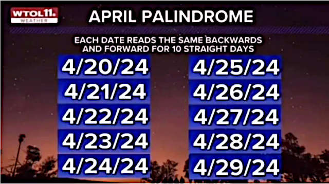 NOW, ON A LIGHTER NOTE: Check out these consecutive palindrome dates between now and the end of the month Posted By: NaturalWisdom