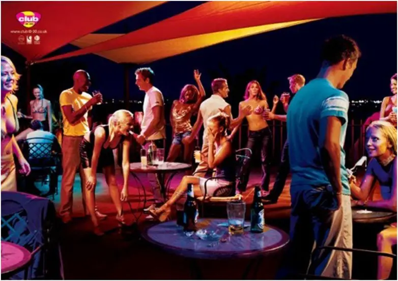 At first glance, this looks like a perfectly innocent advert for the 18-30 club, but when looked at closely, you can see the carefully planned out sexual connotations. The advert is planned so that the unaware prospective customer will only subconsciously perceive the various sexual positions hinted at (but will go on to buy the holiday?!).