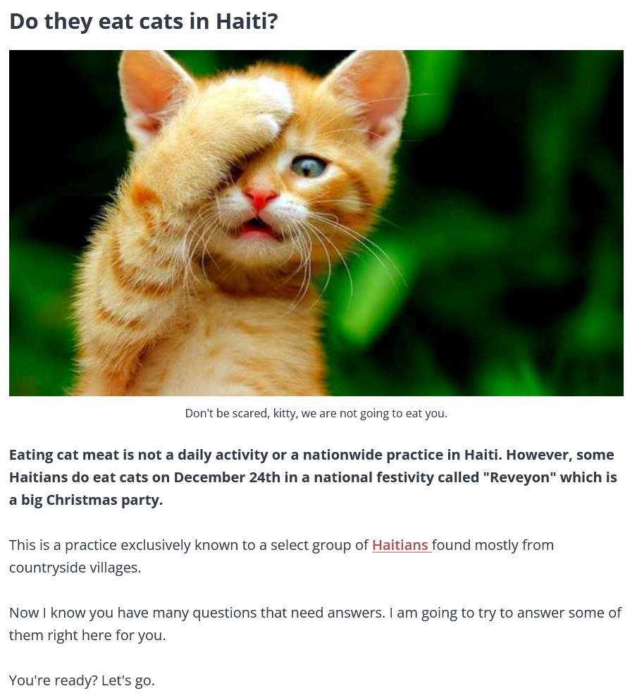 Do Haitians Eat Cats? (Article from 2019) Posted By: AndiV