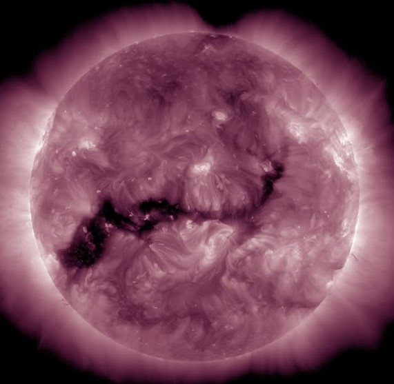 A huge coronal hole spanning 1/4 of the circumference of the Sun is opening, allowing unusually fast solar winds to head towards Earth, #NASA announces.