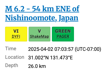 Telegram: M 6.2 quake occurred in southern Japan in marked area. However, not all the energy was released, so further seismic activity with higher magnitude is possible Posted By: NaturalWisdom