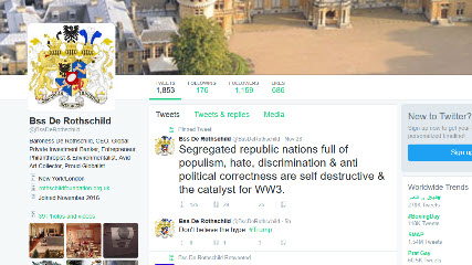 BATTLEFORWORLD.COM | April 10, 2025: In the year 2016 when Donald Trump was campaigning for president, an account with the name 'BssDeRothschild' appeared on Twitter (now called X), identified as Baroness de Rothschild associated with the elite banking family who gave Chaim Weizmann the money to jumpstart Zionism and pushed the state of Israel into existence.
