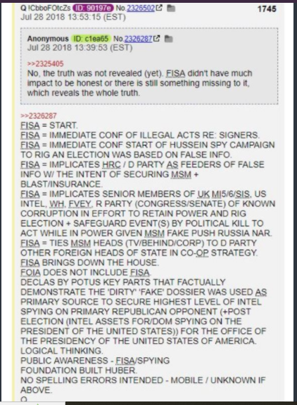 FISA = IMPLICATES SENIOR MEMBERS OF UK MI5/6/SIS, US INTEL, WH, FVEY, R PARTY (CONGRESS/SENATE) OF KNOWN CORRUPTION IN EFFORT TO RETAIN POWER AND RIG ELECTION + SAFEGUARD EVENT(S) BY POLITICAL KILL TO ACT WHILE IN POWER GIVEN MSM FAKE PUSH RUSSIA NAR.