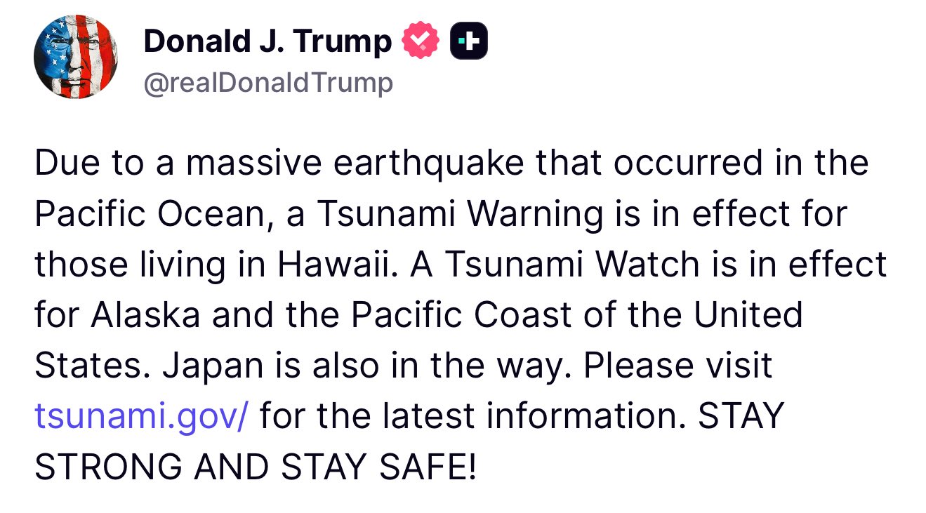 TRUMP MSG & LINK Tsunami Warning System Posted By: jensingr